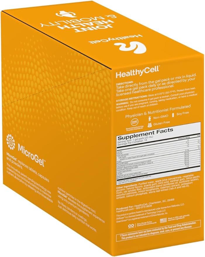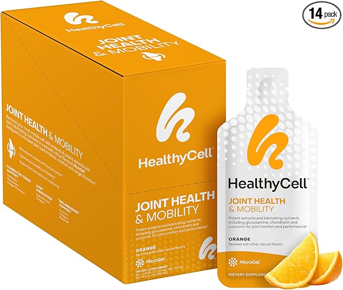 Healthycell Joint Health & Mobility Daily Liquid Supplement - Joint Support Supplement, Inflammation Response, Cartilage & Flexibility with Curcumin, Glucosamine & Chondroitin - 14 Gel Packs