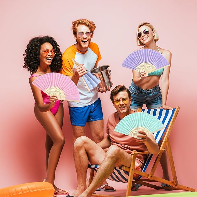 - Asset for All Occasions: folding fans are accessories for various themed parties, weddings, birthdays, carnival, festival, dance, technology, weirdness, role playing, disco, concert, and other thematic parties, ideal for projects, team building activities, picnics, activities, summer, beaches, gardens and more, also can be birthday gifts, party props, dance props, stage props, wedding decoration accessories, souvenirs, or party gifts