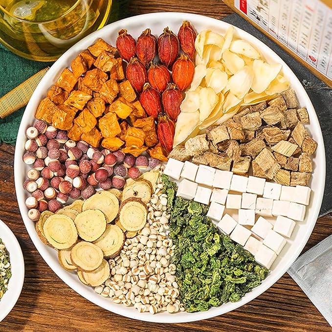 • 【GINSENG FIVE TREASURE TEA】Dry tea has a clear texture, and uniform size, they were dried when in fresh status, using a special process to preserve each herb's moisture
