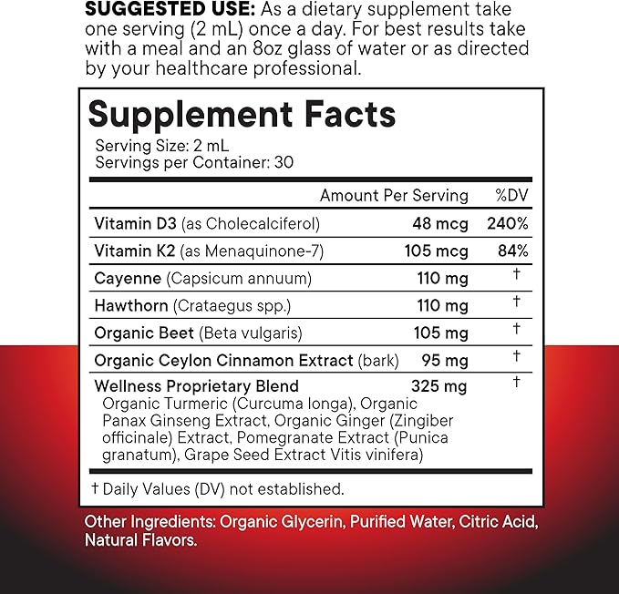 - Trusted Quality - Made in the USA with Non-GMO ingredients, these liquid drops undergo third-party testing on every batch for your safety.Featuring cayenne pepper supplements, hawthorn berry capsules in liquid drop, organic beets, turmeric liquid supplement, vitamin D3 K2, ginseng root, Ceylon cinnamon supplement, and berberine liquid drops, this comprehensive blend brings together high-quality botanicals for everyday wellness.