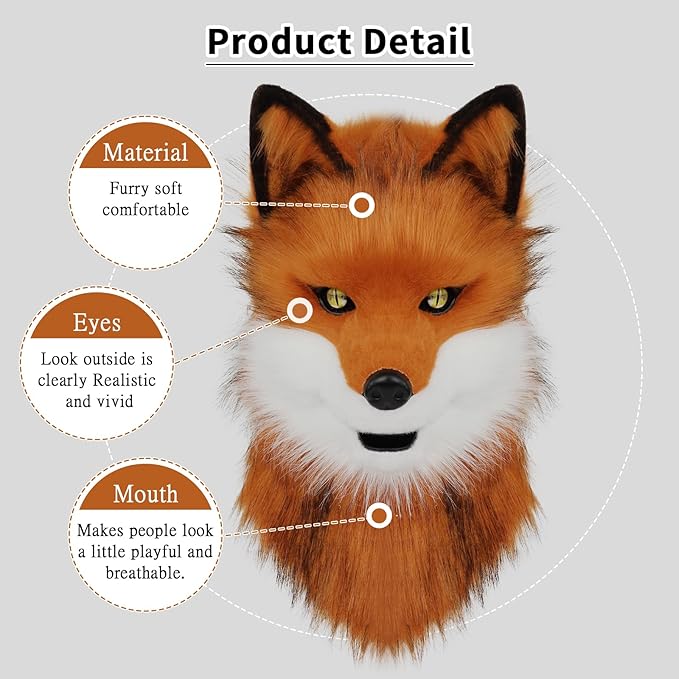 • The mouth of this animal mask will follow movements of your mouth, vivid eyes, realistic dog wolf design, cute and funny. This animal mask is the perfect accessory for a halloween party costume and it's sure to surprise your friends.