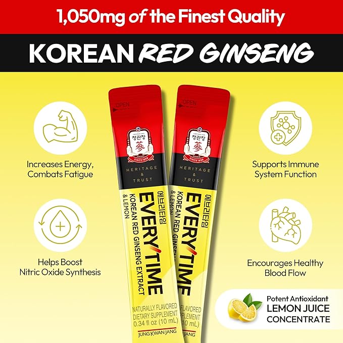 - Flavor : Lemon – 1,050mg Korean Red Ginseng Extract