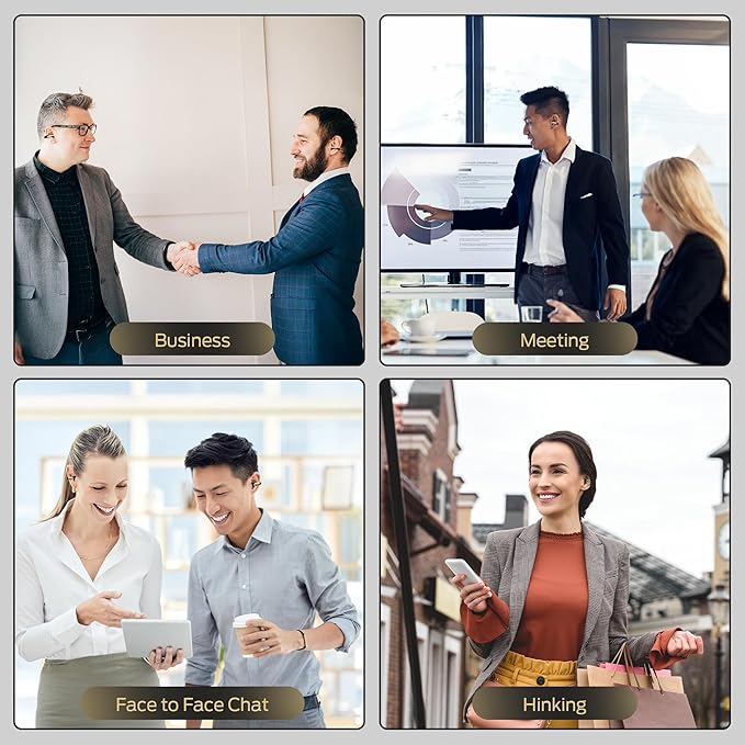 - [Support 3 Translation Modes] Dual Ear mode, Simultaneous Interpretation mode, or Headphones & Phone mode to suit your needs. These language translator earbuds are designed for both professional and daily use, seamlessly integrating translation, music playback, and phone communication. Enjoy exceptional sound quality with crystal-clear audio in any environment, ensuring every conversation, song, and call is heard with perfect clarity.