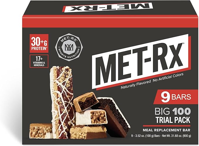MET-Rx Big 100 Trial Pack, Meal Replacement Bars, 9 Count
