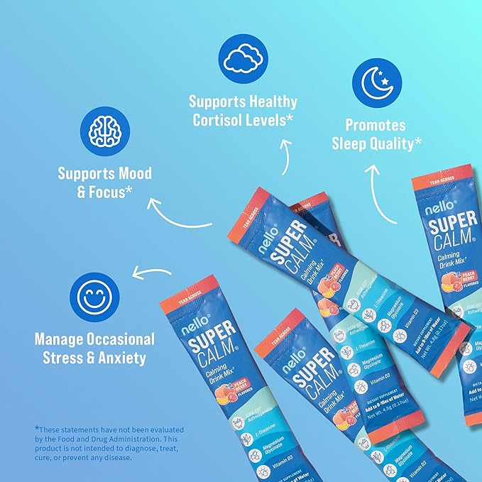 - REFRESH, RELAX, REFOCUS: Nello's SuperCalm supports you in effortlessly enjoying relaxation and focus anytime, anywhere. Savor the vibrant flavors of blue coconut in convenient, on the go packets or the multi-serving canister while promoting your body's vitality and equilibrium.
