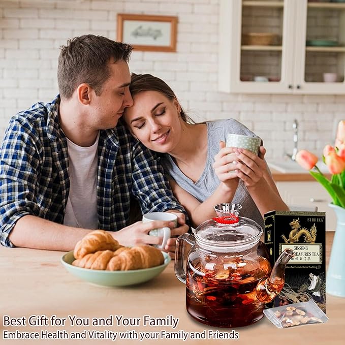 - RICH FLAVOR PROFILE: Experience the deep, aromatic richness of Ginseng Six Treasure Tea with each sip. The delightful sweetness comes from the natural essence of mulberries, ginseng, and red dates, providing a satisfying taste that warms the soul and nourishes the body.
