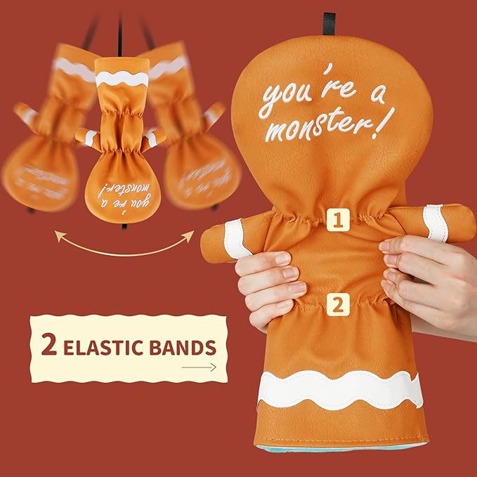 - 【You're a Monster with Embroidery】 The gingerbread man design is very special and cute and does not lose color or skin, Exquisite embroidery craftsmanship making the hat golf club head cover both durable and stylish