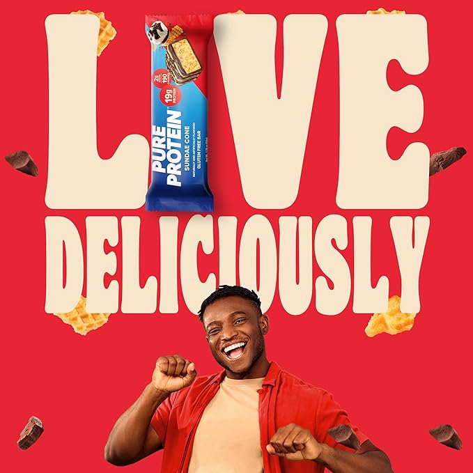 Pure Protein Bars, High Protein, Nutritious Snacks to Support Energy, Low Sugar, Gluten Free, Sundae Cone, 1.76oz, 12 Count (Packaging May Vary)