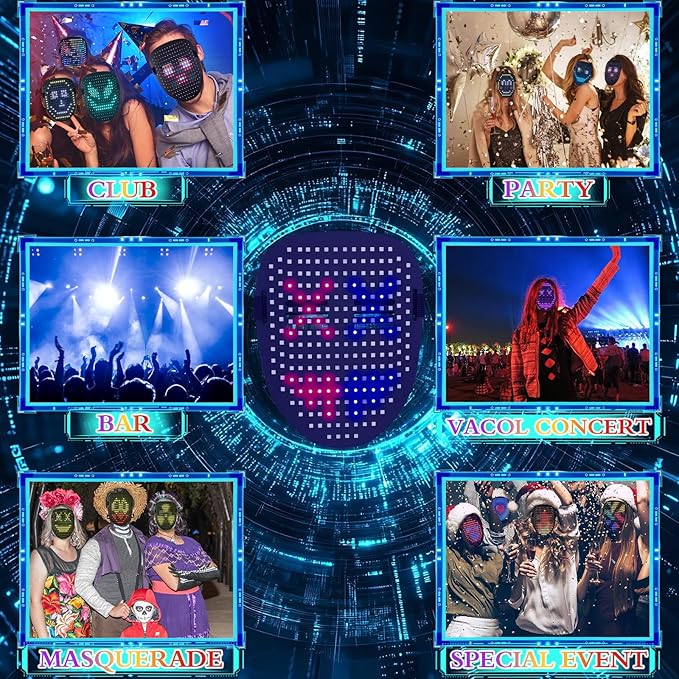 - [Light up Mask with 50 Patterns]: Choose from 25 dynamic display modes and 25 static images. Transform your look instantly with this face transforming LED mask. Its vibrant LED lights and dynamic designs keep your costume fresh and exciting.