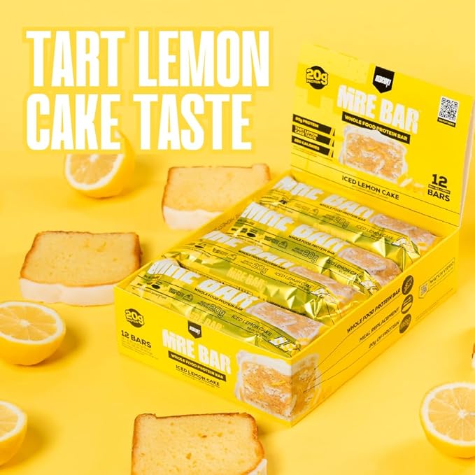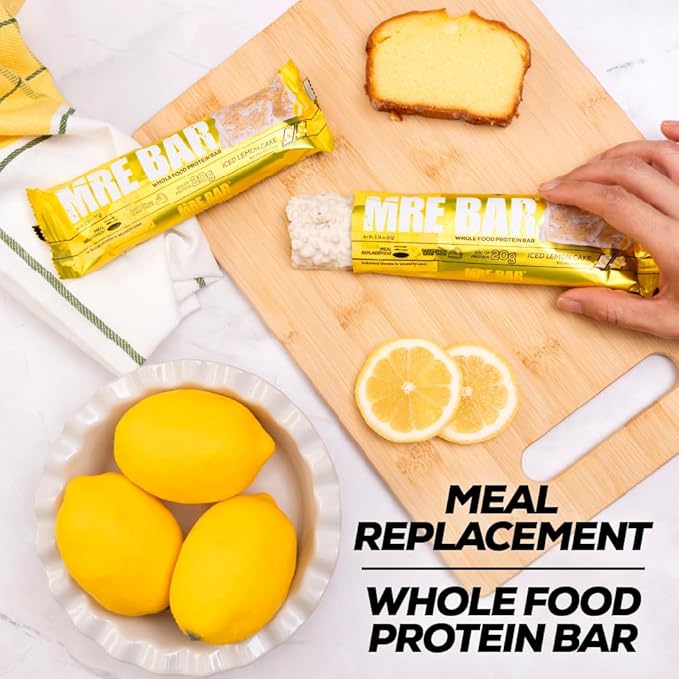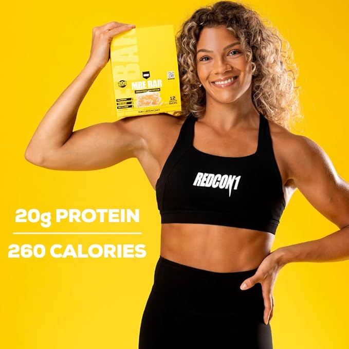 REDCON1 MRE Protein Bar, Iced Lemon Cake - 20g of Whole Food Protein + MCT Oil - Easily Digestible, Macro Balanced Low Sugar Meal Replacement Bar (12 Bars)