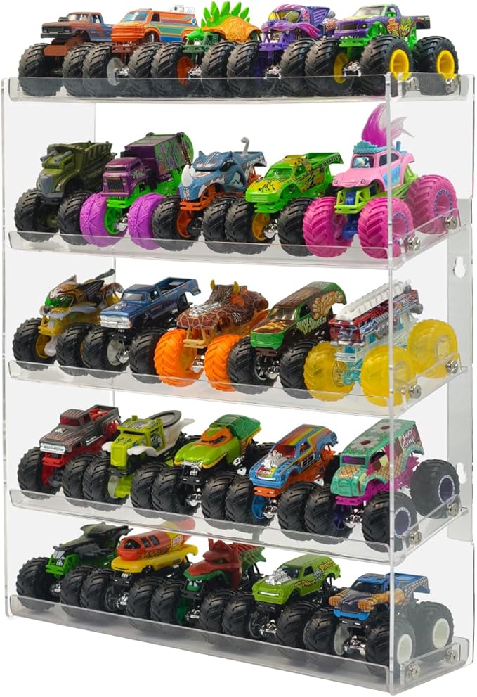 AAiphuwew Acrylic Monster Trucks Display Case - Holds Up to 25 Car Collectibles, Clear 5 Tiers Toy Truck Cars Display Storage Organizer Tire Shelf