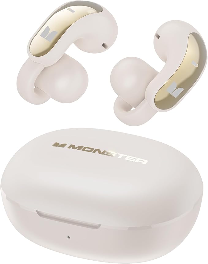 Monster Open Ear AC228 Wireless Headphones, Clip-On Earbuds, Adaptive Comfort, Immersive Audio, Bluetooth 6.0 Open Ear Earbuds with ENC Clear Call, 30H Playtime, IPX5 Water Resistant for Sport, White