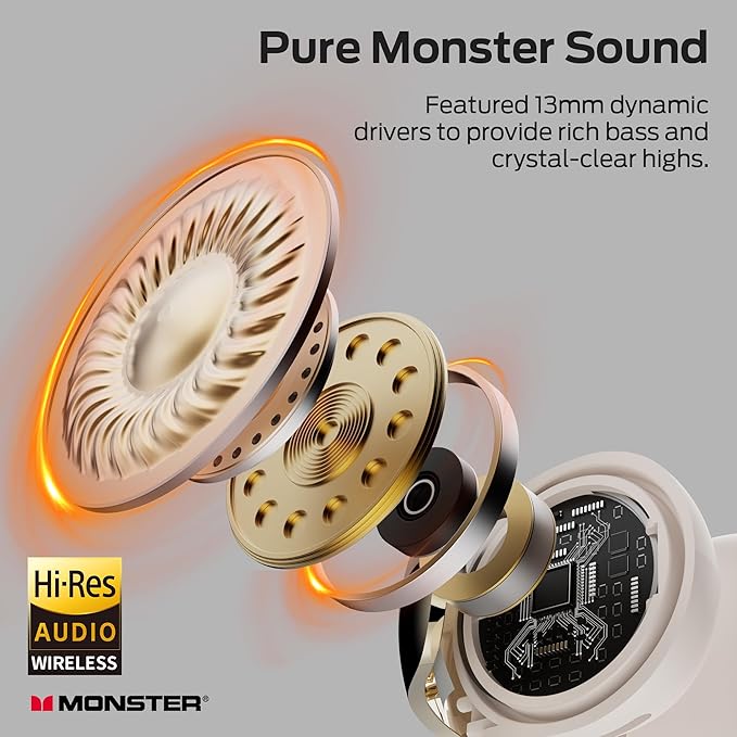 - 【Advanced Bluetooth 6.0】 With the latest Bluetooth 6.0 technology, Monster earbuds provide faster pairing, improved range, enhanced stability and lossless transmission, enhancing your gaming, calling and listening experience.
