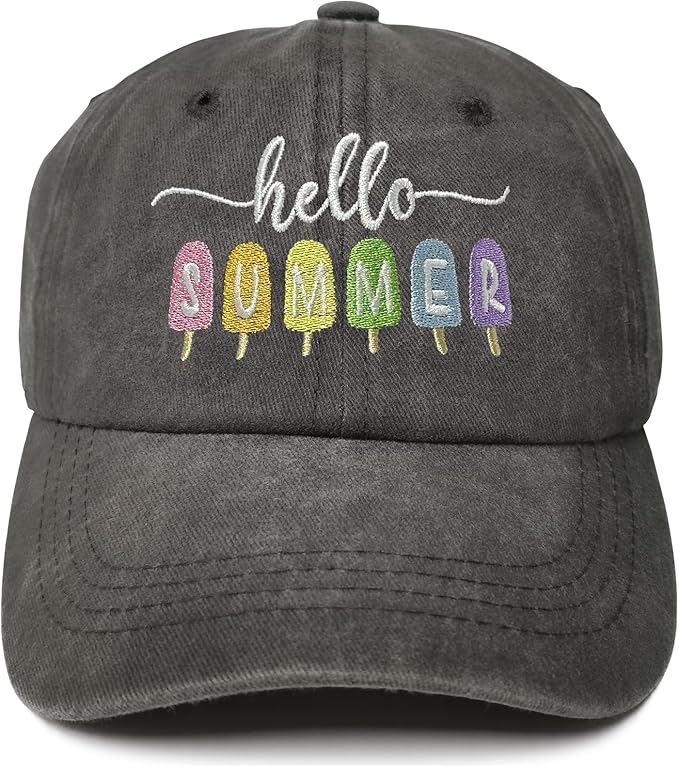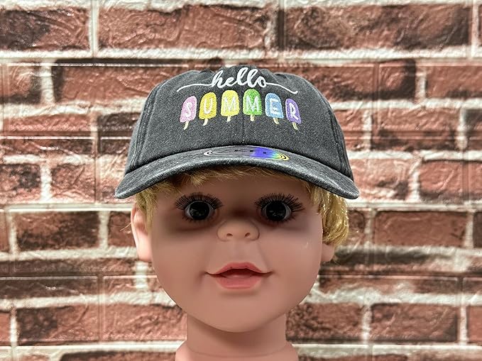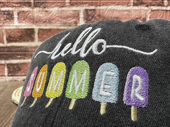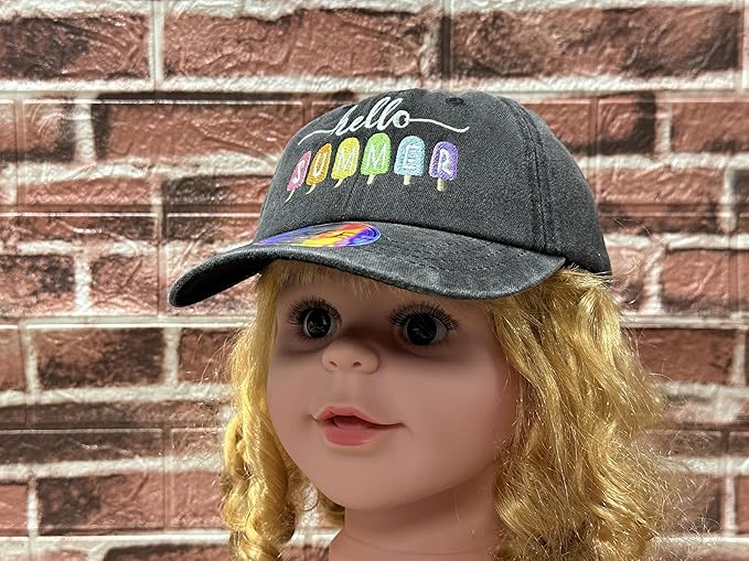 - Unique Design: Get your little one ready to embrace sunny vibes and a fun summer! This embroidered "Hello Summer" kids Happy Last Day of School baseball cap features an adorable, colorful popsicle design, bringing sunshine and joy to every day. Whether they're playing outdoors, at the beach, or in the park, this washed black dad hat adds a bright pop of color to their summer look. Comfortable, and full of summer spirit – it’s the perfect accessory to brighten up your children's day!