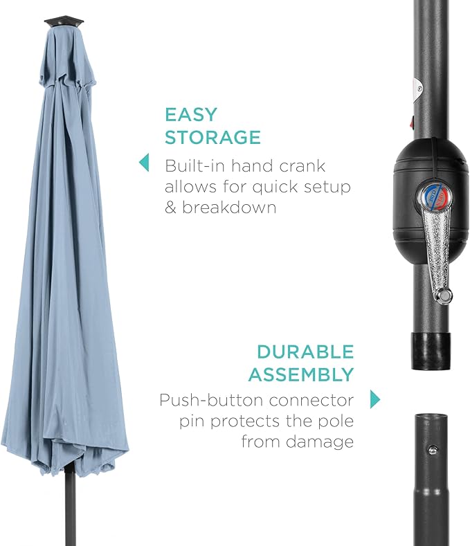 Best Choice Products 10ft Solar Polyester LED Lighted Patio Umbrella w/Tilt Adjustment and UV-Resistant Fabric - Breeze Blue
