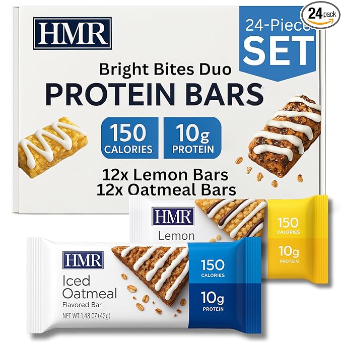 HMR Bright Bites Duo, Lemon & Ice Oatmeal Protein Bar Combo (24 Count) | 10g of Protein, Low Calorie | Nutritious Snack to Support Weight Maintenance