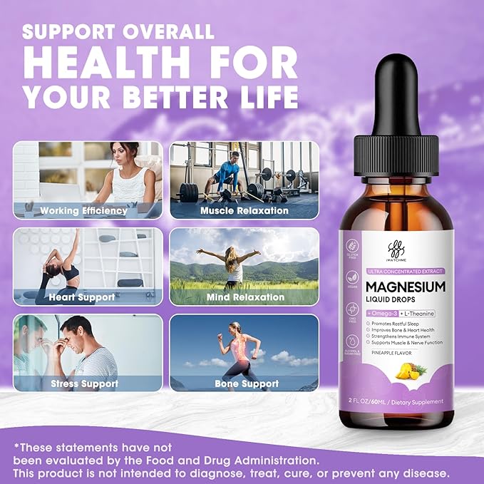 - Easy-to-Take Liquid Magnesium - Take 2ml vegan drops daily, 30 days supply. Shake well before use. Can take it directly, or add it to water or any drink for most lifestyles. Our magnesium liquid drops have been carefully made and these forms are the mildest for the digestive system, are easily absorbed by the body and have a pineapple flavor that tastes great and will be enjoyed by the whole family.