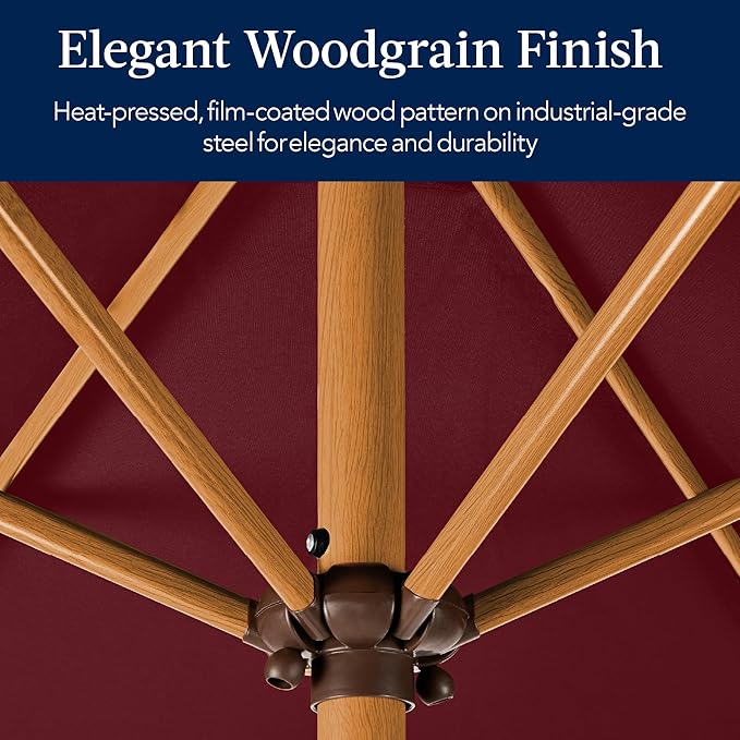 Best Choice Products 10ft Market Umbrella, Outdoor Sun Shade for Backyard, Deck, Poolside, Table w/Woodgrain Pattern, Easy Tilt & Crank - Burgundy