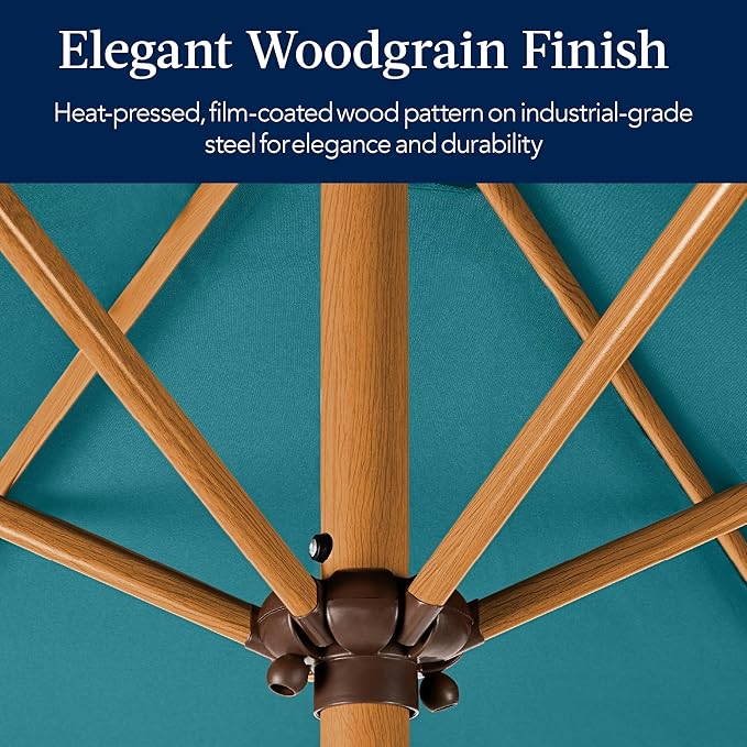 Best Choice Products 10ft Market Umbrella, Outdoor Sun Shade for Backyard, Deck, Poolside, Table w/Woodgrain Pattern, Easy Tilt & Crank - Cerulean