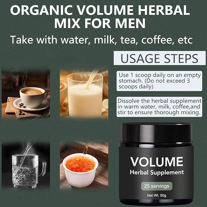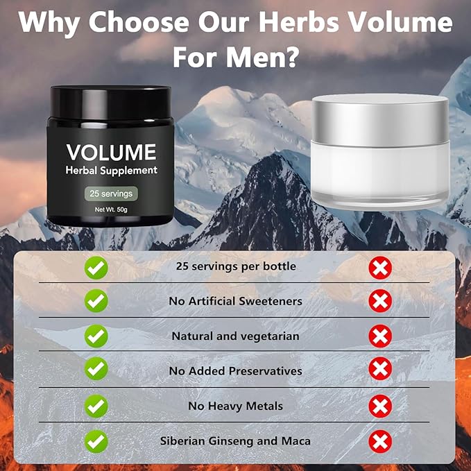 - 【Herbs Volume for Men】Volume herbal mix is enriched with a multi-herbal formula including Siberian Ginseng, Maca and American Ginseng to help balance health and energy production.