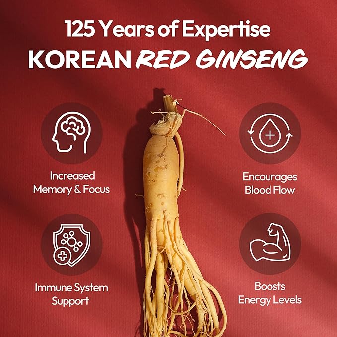 - UNMATCHED POTENCY & EFFICACY. Rediscover vitality with the rich tradition of Korean Red Ginseng, crafted from roots mindfully cultivated and harvested. Packed with high levels of Ginsenosides to support energy, memory and focus, and productivity. Made using time-honored steaming and drying methods, it embodies centuries of expertise and craftsmanship!