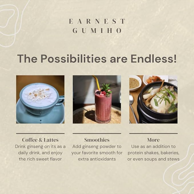 - We take great care in making our ginseng powder to ensure it’s as pure as possible. There are no added chemicals, sugar, or artificial ingredients—just wholesome, natural goodness. Using advanced techniques, we preserve the rich flavor and benefits of ginseng, while the yam enhances the taste and texture, making every drink a treat to enjoy.