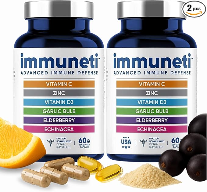Advanced Immune Support – Doctor Formulated 6-in-1 Daily Immunity Supplement Pack of 2 – Made in USA – With Vitamin C, D3, Zinc, Elderberry, Garlic & Echinacea – Provide Vital Nutrients & Antioxidants