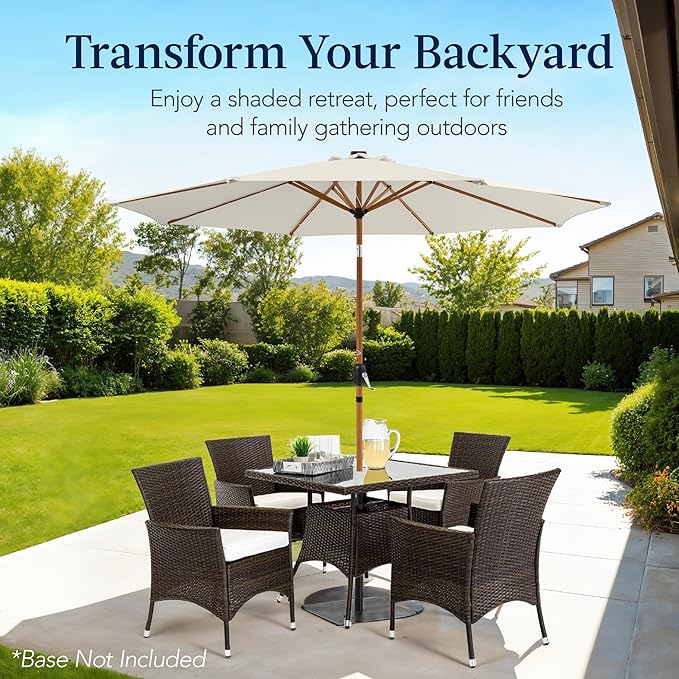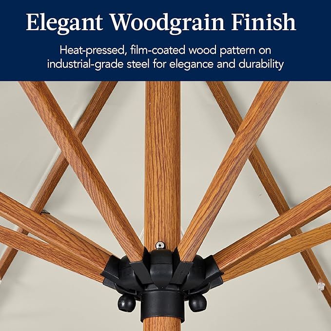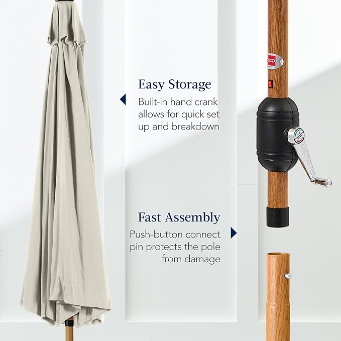 Best Choice Products 10ft Solar Market Patio Umbrella w/Woodgrain Pattern Pole, LED Lights, Tilt & Crank – Outdoor Sun Shade for Backyard Table, Deck, Poolside – Ivory