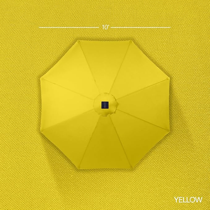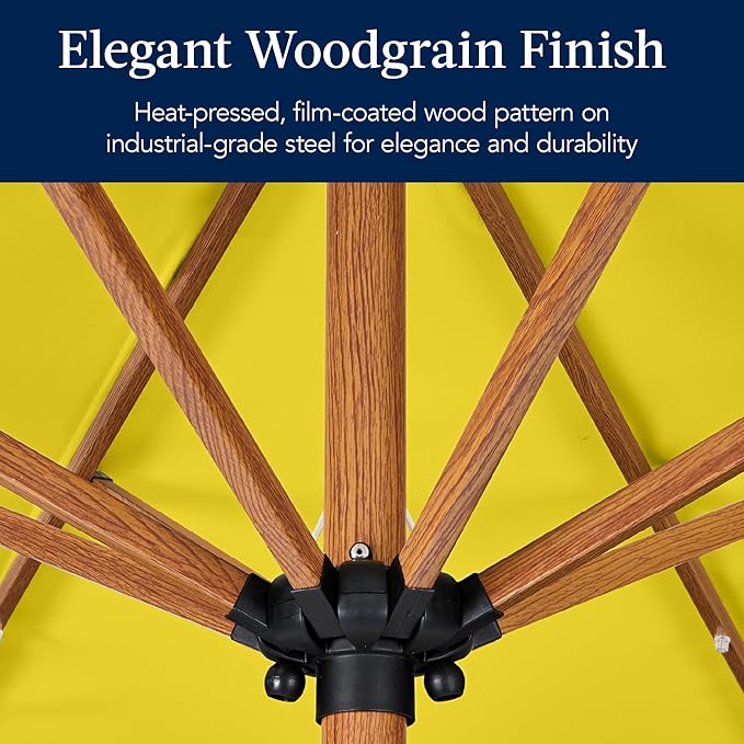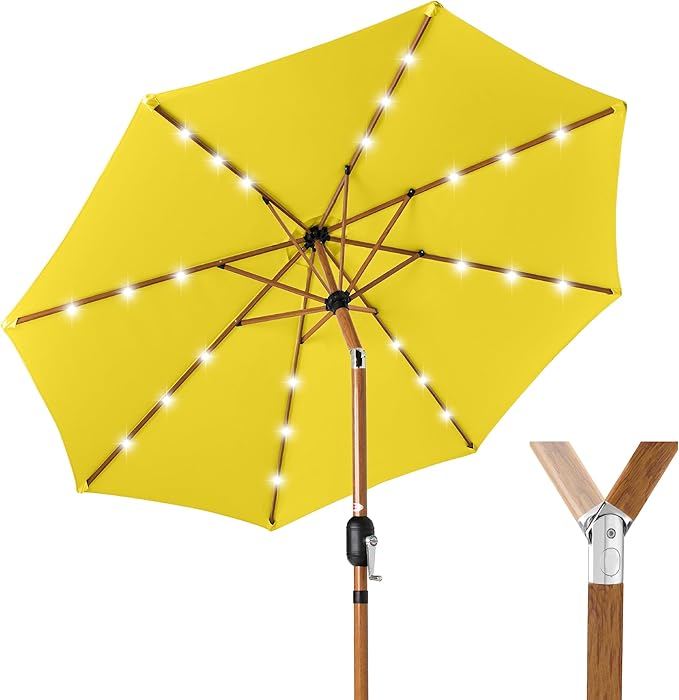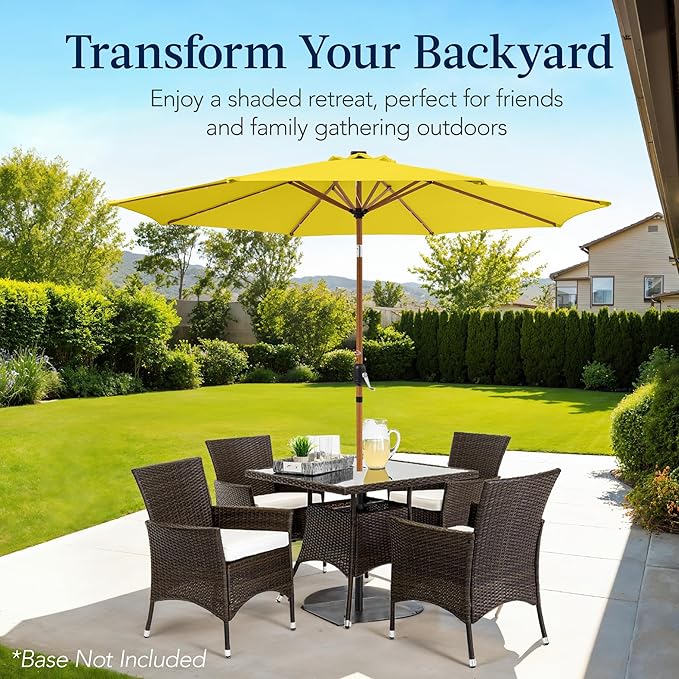 Best Choice Products 10ft Solar Market Patio Umbrella w/Woodgrain Pattern Pole, LED Lights, Tilt & Crank – Outdoor Sun Shade for Backyard Table, Deck, Poolside – Yellow