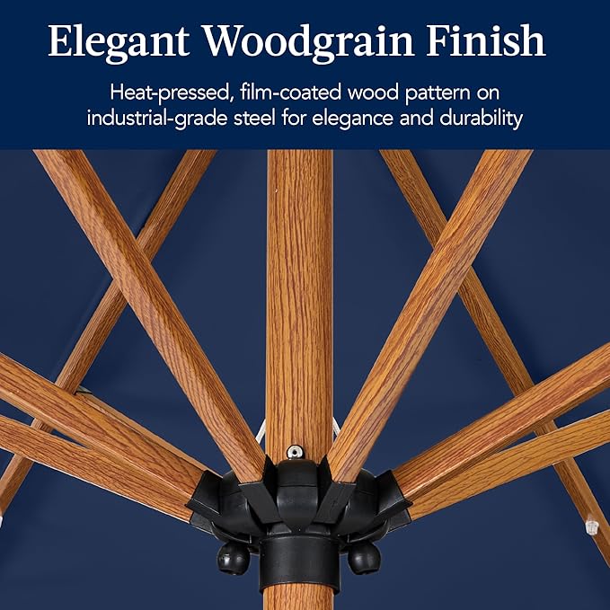 Best Choice Products 10ft Solar Market Patio Umbrella w/Woodgrain Pattern Pole, LED Lights, Tilt & Crank – Outdoor Sun Shade for Backyard Table, Deck, Poolside – Navy Blue