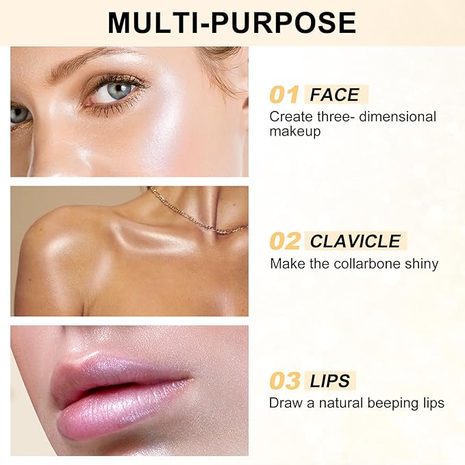 - Travel-size: At a compact size it's perfect makeup highlighter to fit in your bag. Lightweight, easy to carry, suit for various occasions and for the personal use or as gift.