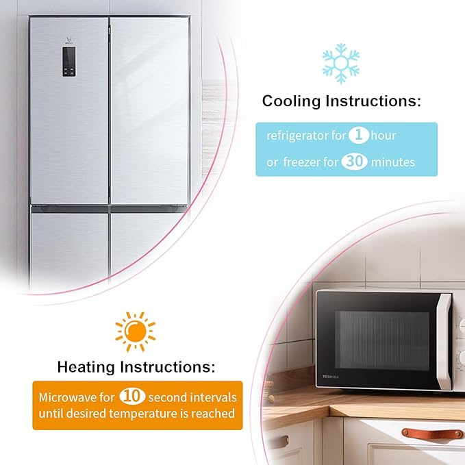 - 【Convenient to Use】Simply store the cooling eye masks in the freezer at -18℃ or lower temperature for at least 2 hours. For better effect,the best freezing time is 2-6 hours.heat the cooling face mask in microwave in 10-15 seconds intervals until desired temperature is achieved,the maximum heating time does not exceed 30 seconds.