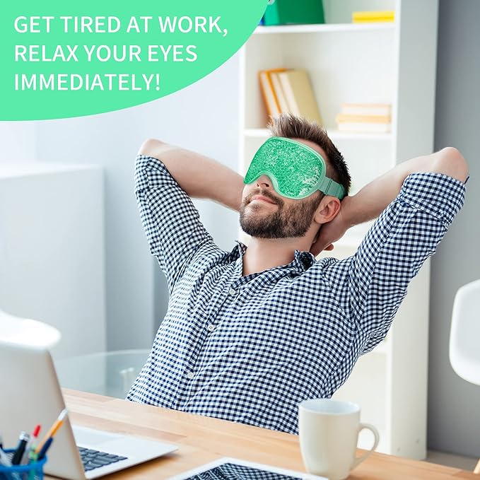 - RELIEVE DISCOMFORT: The gel bead eye mask is a quick and easy way to relieve your eye discomfort. Freeze the gel eye mask and put it on your eyes to reduce puffiness from a night of poor sleep or a late night, or to relieve tired eyes that have been staring at a computer all-day