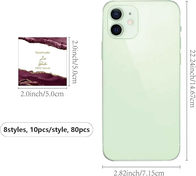 - SIZE: square custom lip balm diy label sticker about 1.96×1.96inch (5x5cm), 8 styles, 10pcs/style, 80pcs/set.