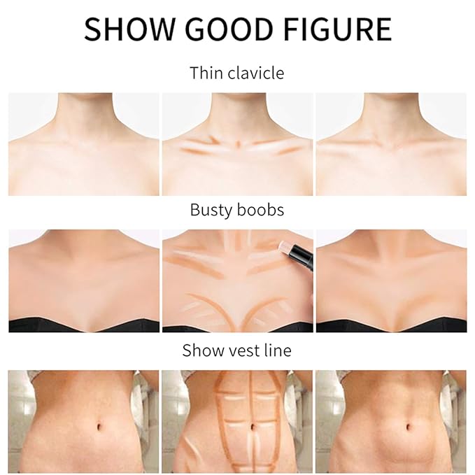 - 【Multifunctional】With this Cream Contour Stick, you can not only Create a natural 3D makeup look, you can also applied it to your body to create or highlight abs or clavicle. Waterproof long-lasting effect.