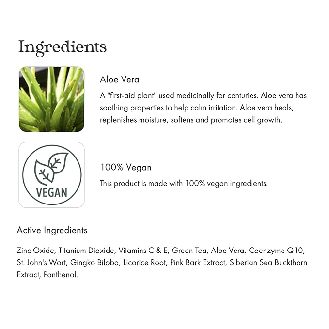 - Lightweight & Non-Greasy - Infused with botanicals like aloe vera and ginkgo biloba, this super-lightweight, non-greasy sunblocks provides tinted broad spectrum defense. The best part? No white film on the skin.*