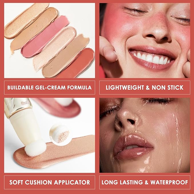 - 【SAVE YOUR MAKEUP TIME】The design of cushion applicator to dispense product evenly makes creating gorgeous, sculpted cheekbones easy. The silky formula is easy to blend and buildable for a lightweight and natural look. It will save your makeup time 80%!