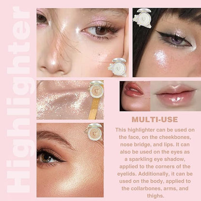 - 【Long-Lasting Wear for All-Day Radiance】With its long-wearing formula, this highlighter stays put for hours, resisting fading and creasing. It can be used as a face highlighter on cheekbones, noses, and chins, or as a Glitter eyeshadow on the eyes. Additionally, it doubles as a body highlighter for arms, collarbones, and other areas.