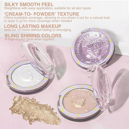 - 【Crystal Clear Shimmer for a Radiant Glow】 Achieve a vibrant, three-dimensional look with its clear and shimmery finish. This luminizer makeup/ Face Highlighter for All Skin Tones. Choose from a range of shades to match your skin tone and create customized makeup effects that suit your style.