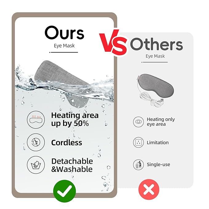 - Therapeutic Heated Eye Mask: Experience unparalleled relaxation and improved sleep with our warming eye mask. Enjoy the gentle warmth surrounding your eyes, fostering a serene environment ideal for relaxation