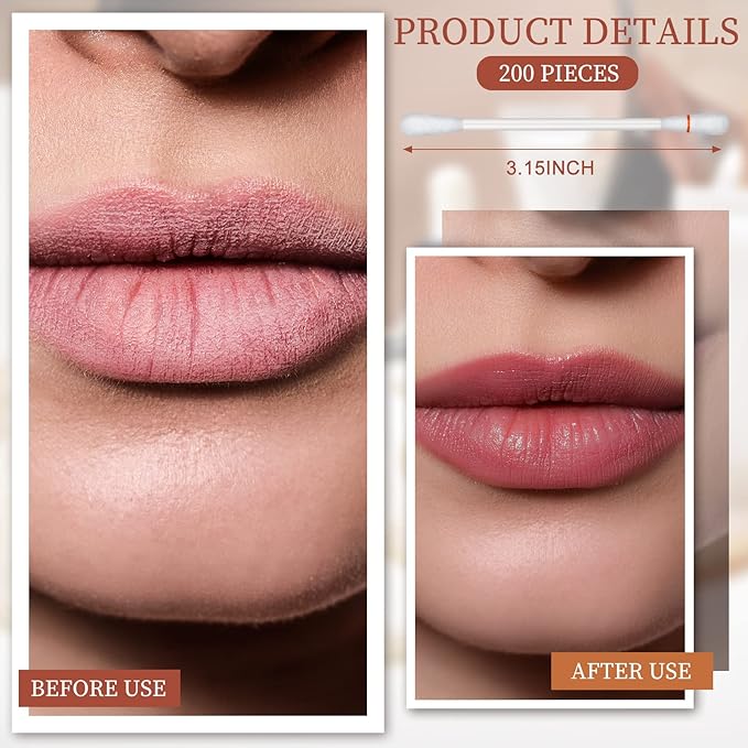 - Wide Scenarios: whether these cotton swabs for bottoming before applying lipstick, enhanced care after removing lip gloss, or general daily lip care, these lip cotton sticks are convenient to carry; You can use them every night before going to bed, just like a "lip mask", ensuring that your lips are hydrated and moving the next day