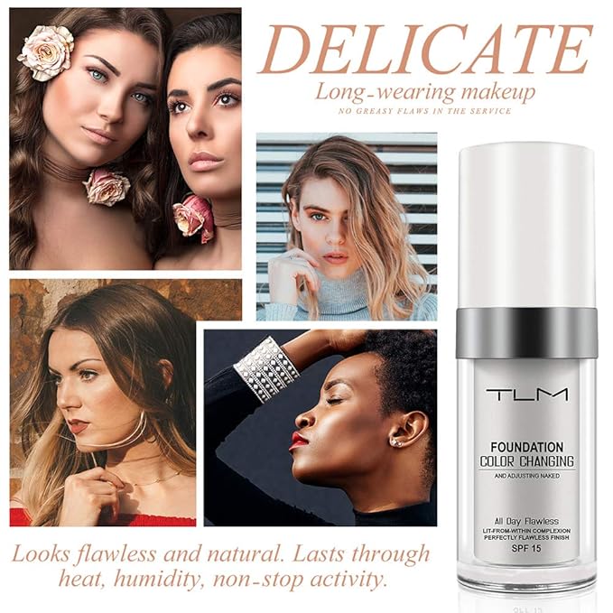 - 【Match your EXACT skin tone】Flawlessly Colour Changing Foundation is a revolutionary new liquid foundation that goes on white and instantly self-adjusts to match dull faces tone,exact skin tone,natural looking color in your perfect shade.