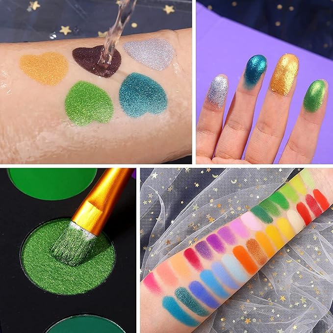 - Variety of colors you can get iconic effects and natural look as well. Fits all ranges of skin tones, easy for both beginners and professional makeup artist. It also fits lots of occasions like music festivals,fashion show,cosplay, parties ect.