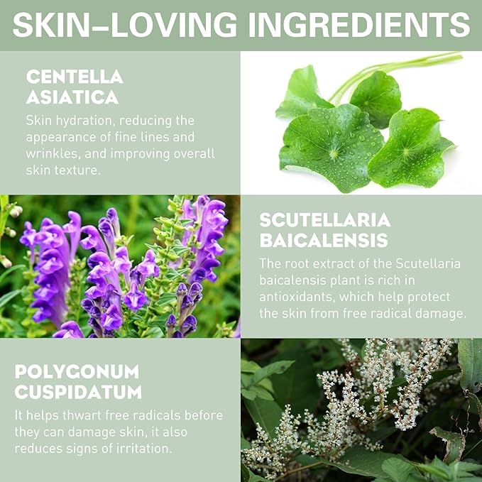 - NATRUAL FORMULA: Formulated with skin nourishing ingredients like centella asiatica, scutellaria baicalensis, Japanese knotweed that makes you feel comfortable, breathable, and non-creasing, non-drying feel on your skin. Perfect for all skin types.